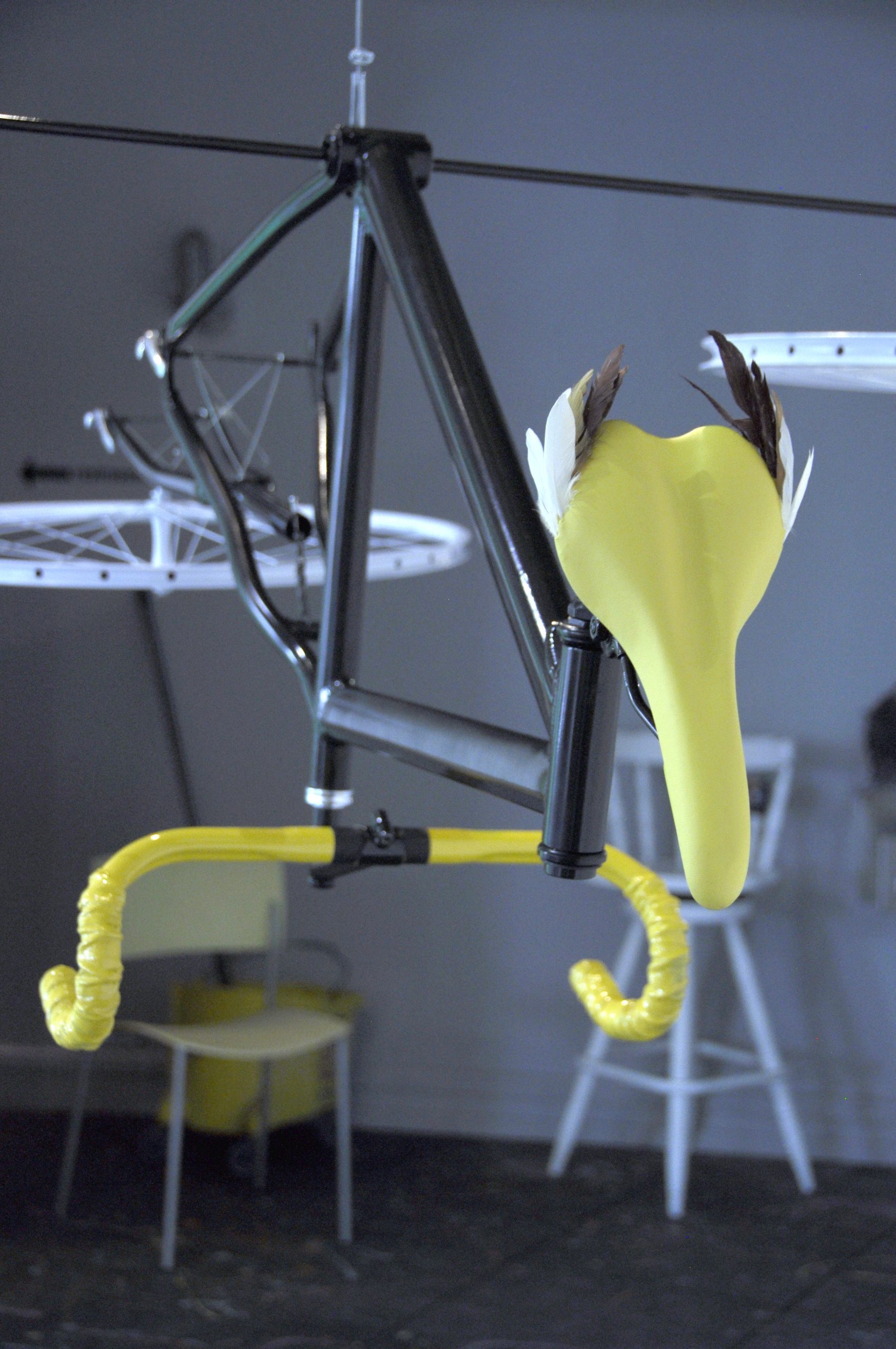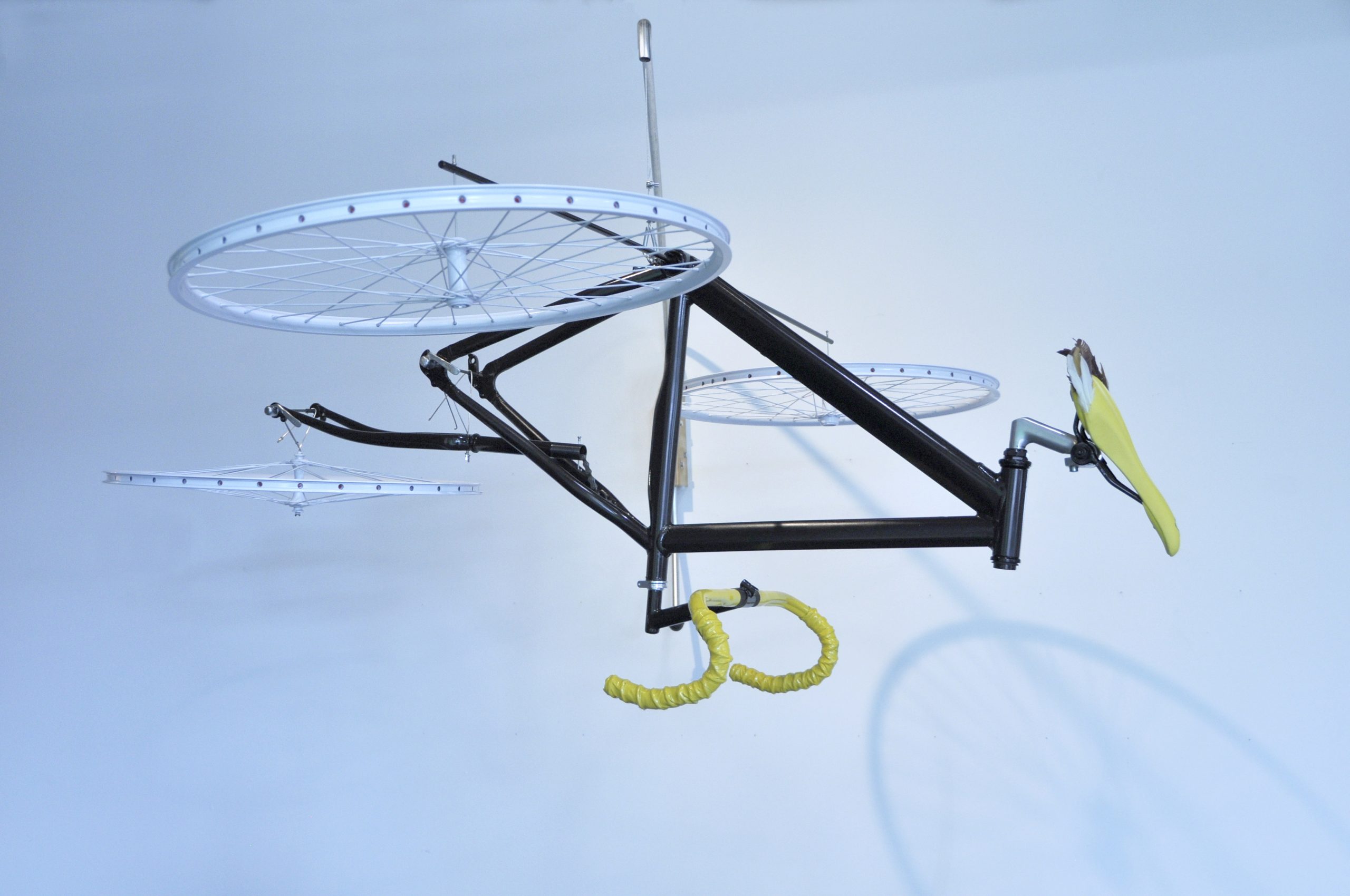 The Schultz piece, which turns a bike into a mobile hanging from the ceiling, might be the smartest move here, and perhaps the most fun. With bike art, fun counts.
